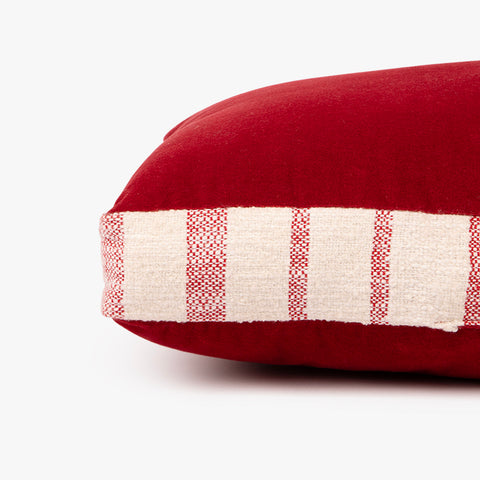Almofada de Veludo Vermelha com Riscas Brancas COZY