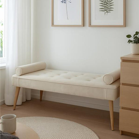 Banqueta Bege com Almofadas Cilíndricas SERENA