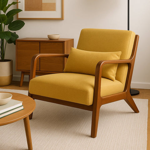 Cadeirão Amarelo com Almofada Amarela e Com Braços BARBER. Uma peça essencial da gato preto, perfeita para dar um toque de estilo e conforto ao seu espaço com originalidade e charme.