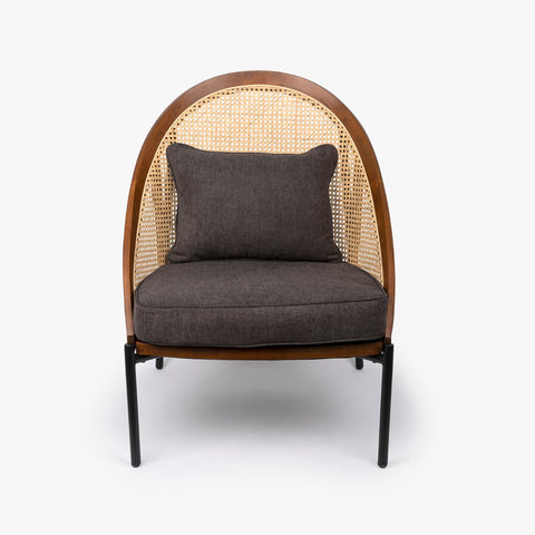 Cadeirão com Almofada Cinza com Costas em Rattan OZAWA