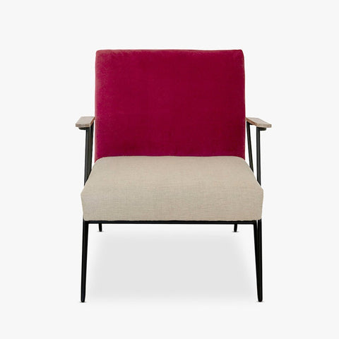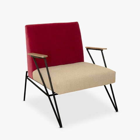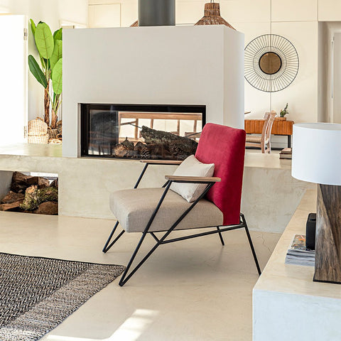 Cadeirão de Linho e Algodão com Costas em Vermelho ELGAR