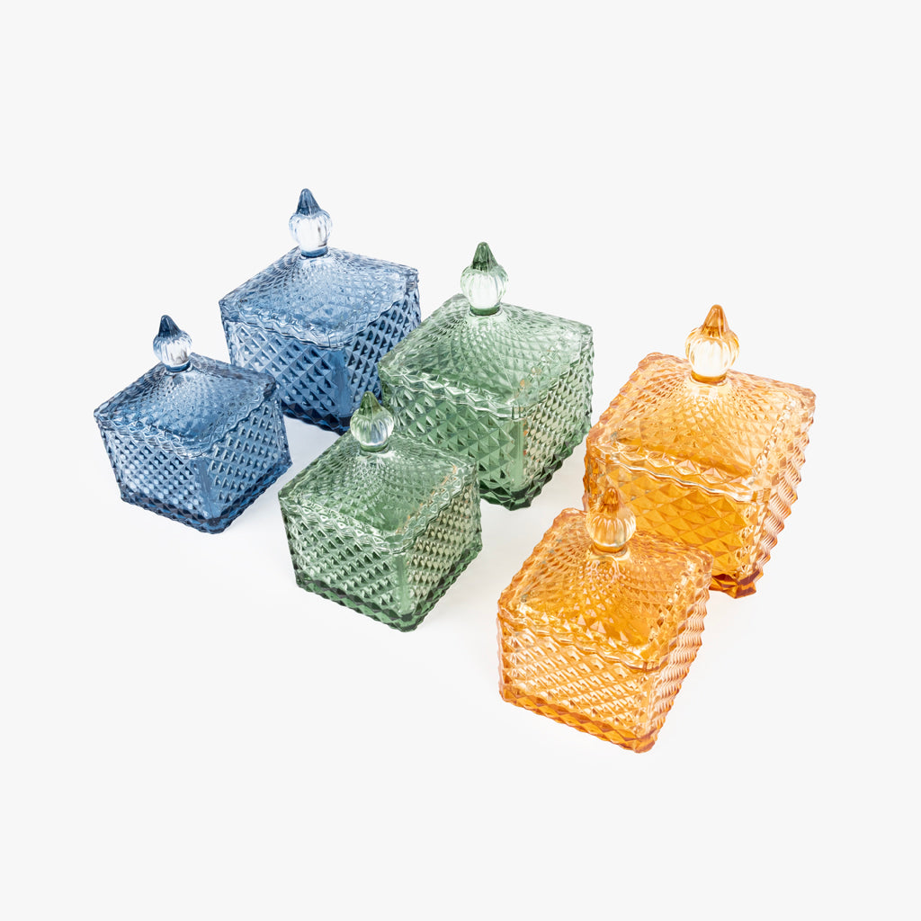 Inspirada nas cores suaves e luminosas do nascer do sol, a coleção Sunrise apresenta caixas decorativas em vidro que refletem a beleza de novos começos. Do azul tranquilo ao dourado radiante, passando pelos tons de rosa e coral, cada peça é um reflexo da energia positiva da manhã.