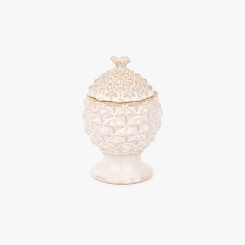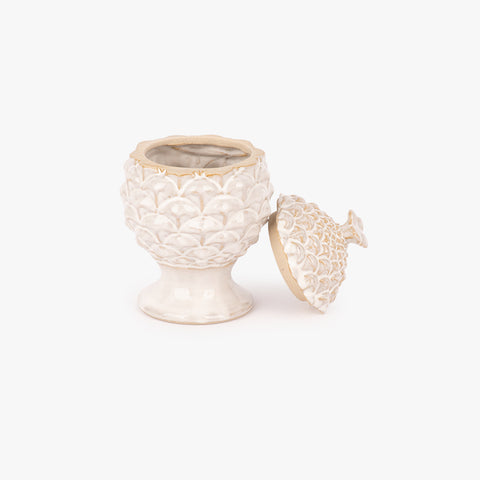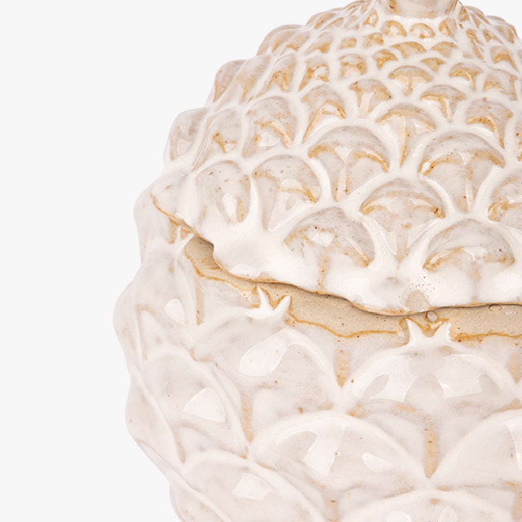 Caixa Branca PINHA. Uma peça essencial da gato preto, perfeita para dar um toque de estilo e conforto ao seu espaço com originalidade e charme.