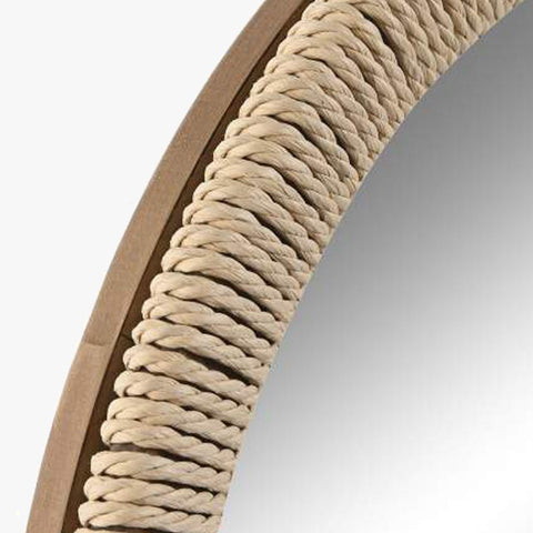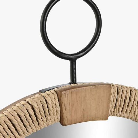 Este espelho redondo é o complemento perfeito para ambientes com inspiração náutica. Com moldura em corda natural e detalhe superior em metal preto, evoca o charme dos antigos instrumentos de navegação. Ideal para varandas cobertas, halls ou casas de praia, adiciona um toque de autenticidade costeira e textura natural ao espaço.