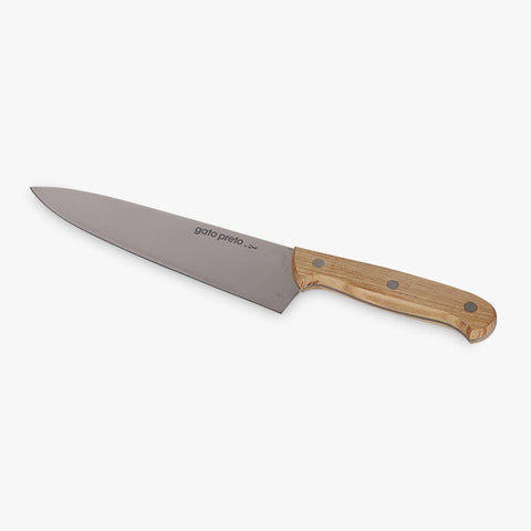 Esta faca de cozinha, fabricada em Portugal, combina desempenho profissional com um design intemporal. Com uma lâmina em aço inox de 20 cm, oferece cortes precisos e duradouros, ideal para preparar carnes, legumes e outros ingredientes com eficiência. O cabo em madeira confere elegância, conforto na pega e um toque natural à sua cozinha. Uma peça robusta, fiável e pensada para quem valoriza qualidade e tradição.