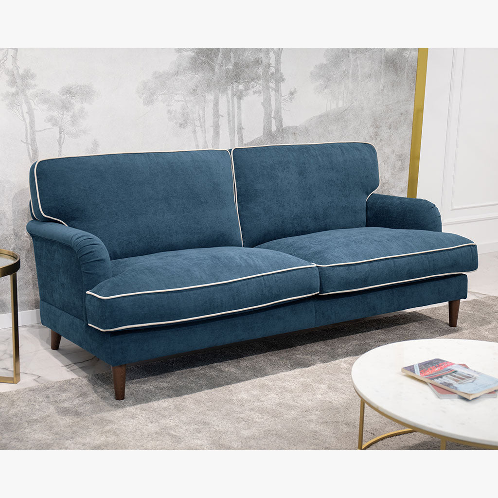 Sofá 3 Lugares Azul Escuro com perfis em Bege SPENCER