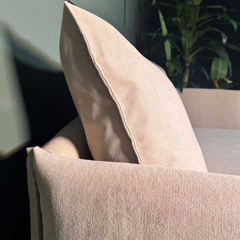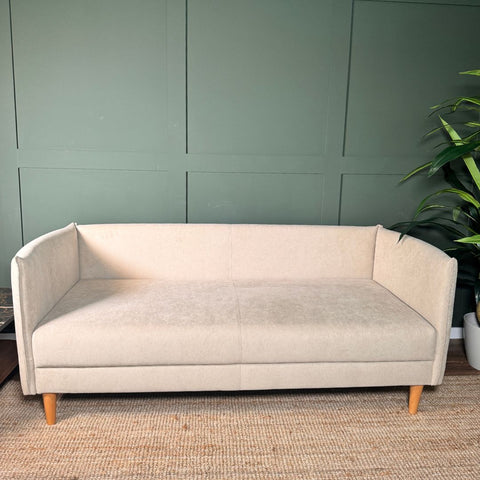 Com pernas finas em madeira e braços curvos e estreitos, o Melanie tem um visual contemporâneo e arrojado, sem comprometer a área de assento. As almofadas macias no encosto e no assento garantem uma experiência acolhedora e confortável.