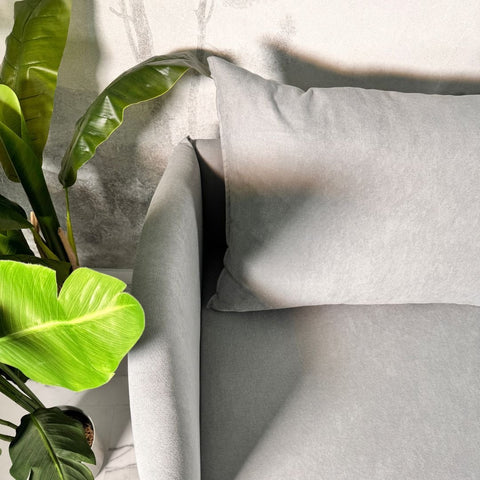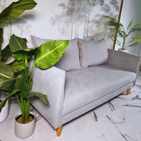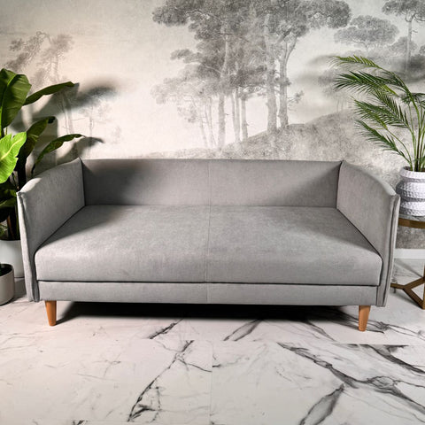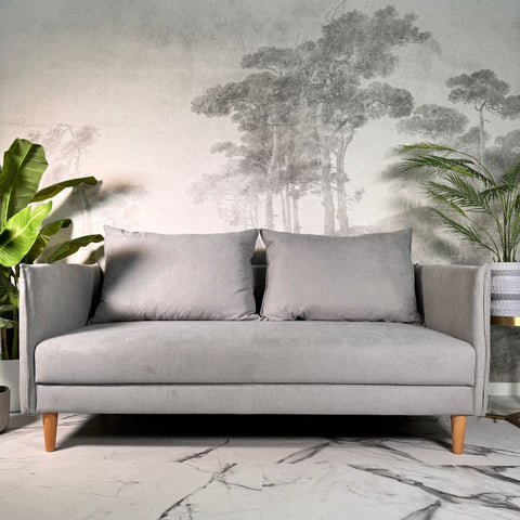 Sofá com pé alto de madeira cinza claro MELANIE