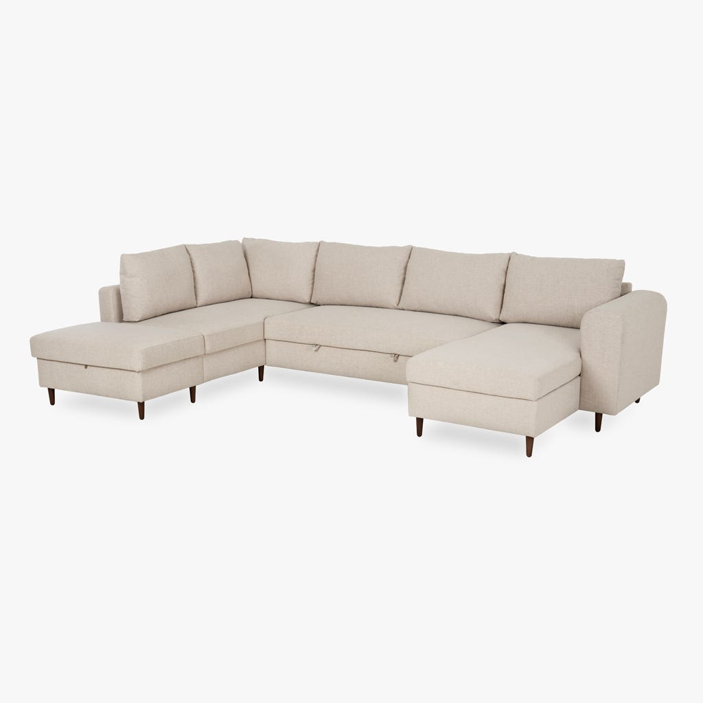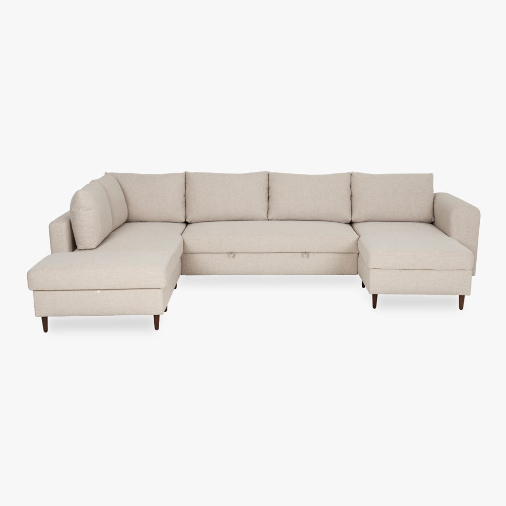 Sofá em U familiar de 4 lugares com linhas clássicas