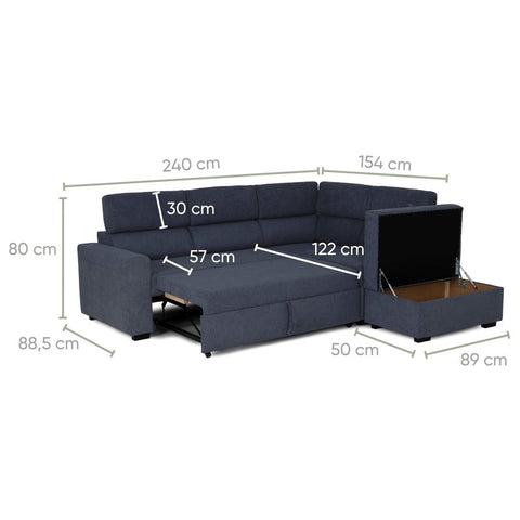 Sofá cama de canto chaise longue esquerda azul BILL