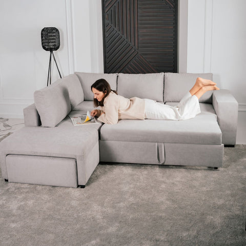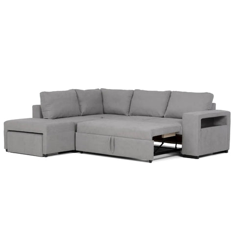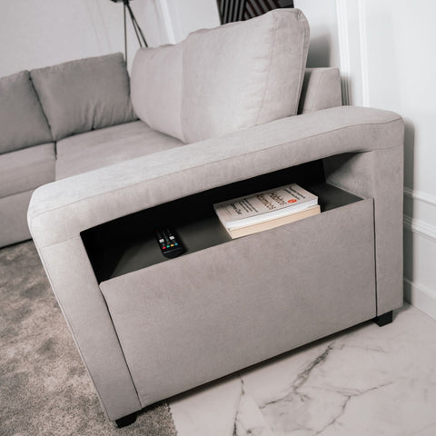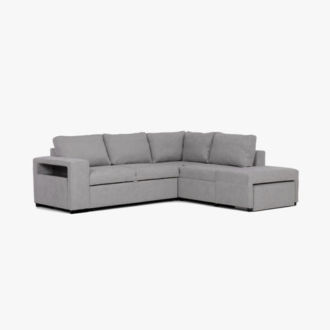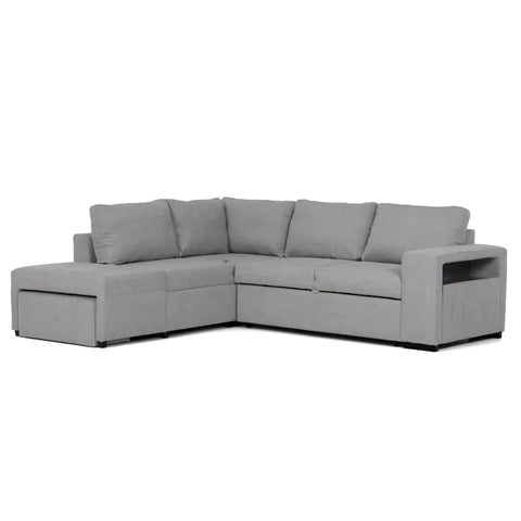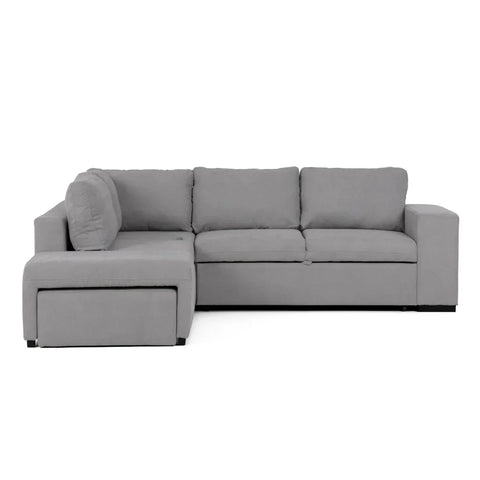 Sofá cama de canto de com puff e arrumação cinza ZURIE
