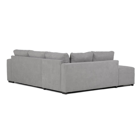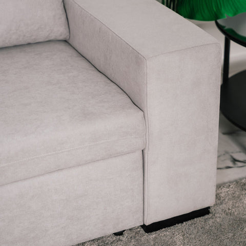 Mobiliário de canto para sala de estar em tecido cinzento, confortável, bem acabado e de excelente qualidade. Com um design moderno e clássico, é perfeito e confortável para a decoração da sua casa.