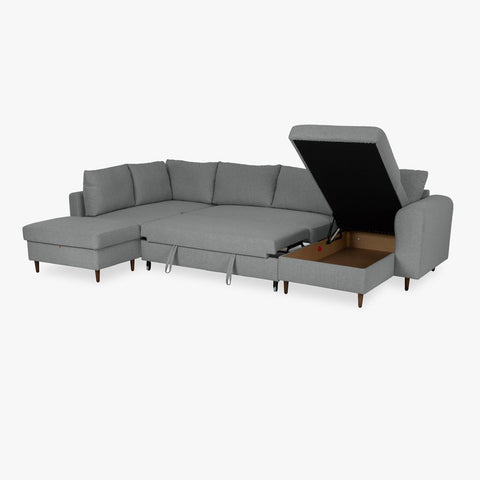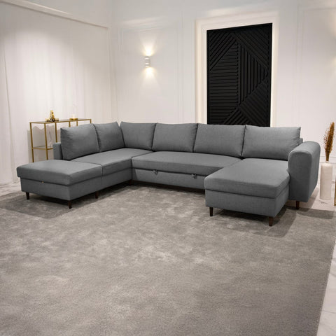 Sofá em U familiar de 4 lugares com linhas clássicas
