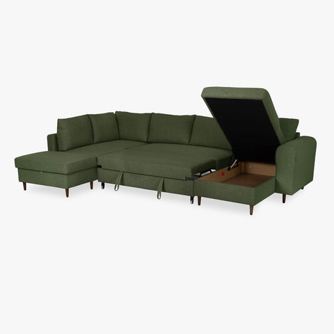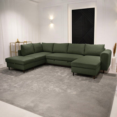 Sofá em U familiar de 4 lugares com linhas clássicas