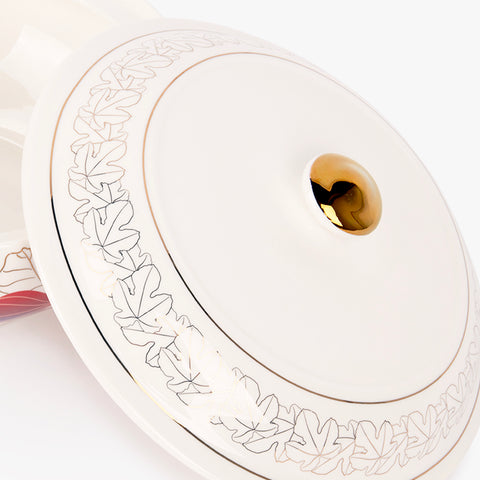 Por ter essa simbologia tão rica, o nosso serviço de festa é inspirado nas suas folhas e frutos, com ilustrações digitais ricas em degradês de cores exuberantes, e o resultado são jardins imersivos surreais com toques metálicos em ouro, trazendo todo o requinte que as festividades merecem.