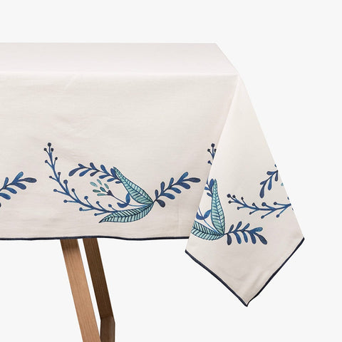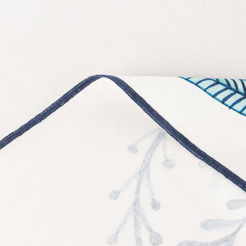 Toalha de Mesa Retangular Branca Pássaros e Flores BLUE BIRD